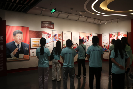 实践活动最后一站来到了新乡南太行党史教育馆。在党史馆,大家参观了“红色太行 民族脊梁”主题展览,展览共分“为有牺牲多壮志、敢教日月换新天、勇立潮头敢为先、百年圆梦新时代”四个部分,通过珍贵的历史图片、历史实物以及大量场景还原和创新型数字科技方式,再现了党领导南太行儿女百年奋斗的伟大历程,彰显了共产党人“为人民谋幸福、为民族谋复兴”的初心使命。
