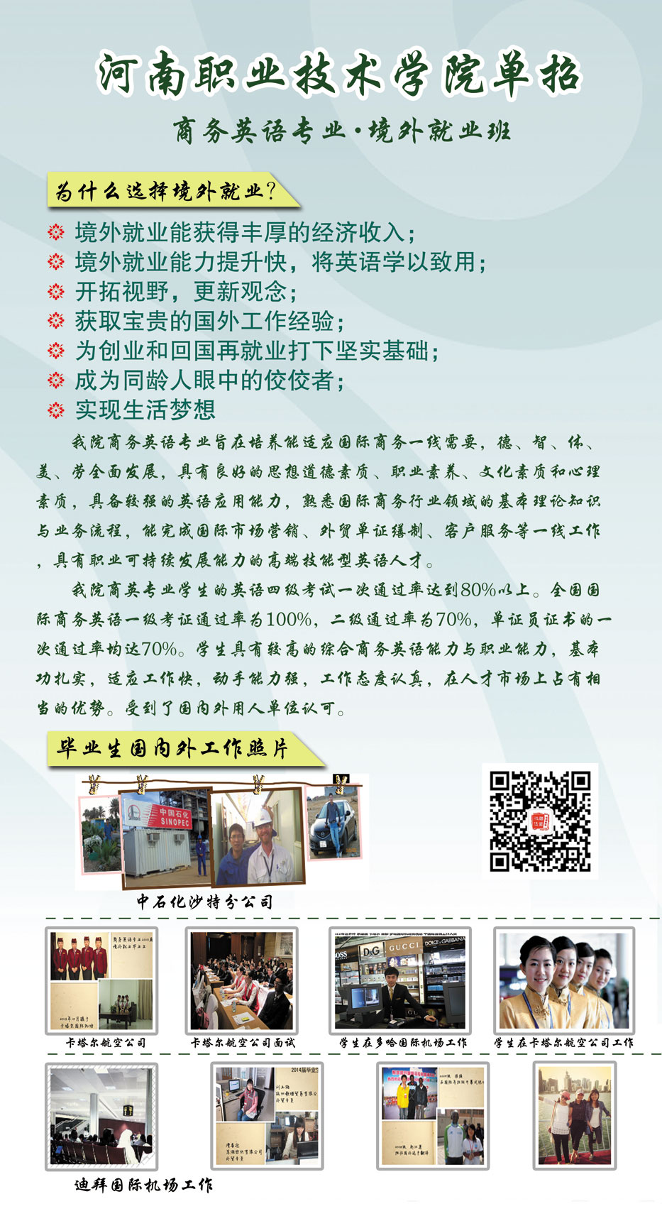上一条:工商管理系2015年招生计划 下一条:河南职业技术学院2015年单独招生方案