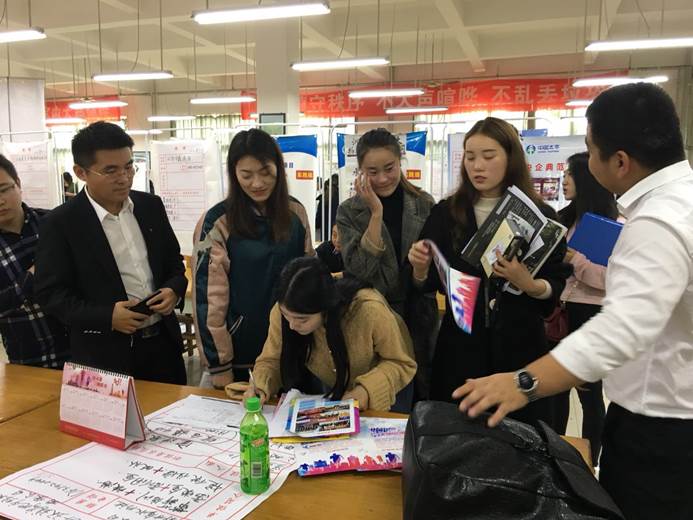 11月2日,由我院与郑东新区如意湖办事处合办的工商管理系2018届毕业生校园专场招聘会在图书馆成功举办。来自全国的316家用人单位为该系2018届毕业生提供万余个实习和就业岗位。党委副书记占江在招生就业处处长张琳和该系领导的陪同下,亲临现场调研并指导毕业生就业工作。