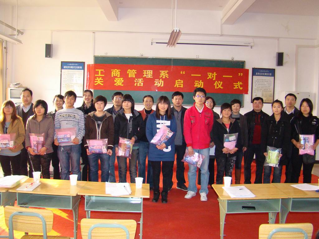 11月10日下午,工商管理系2011年度“一对一”关爱活动启动仪式在商务礼仪实训室举行。占江副院长出席仪式,并为学生赠送生活用品。