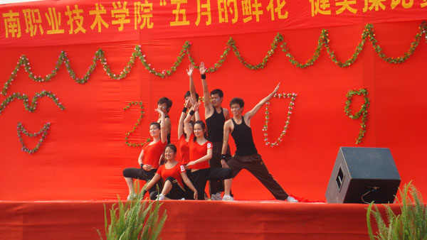 5月21日下午,由团委学生处主办的“五月的鲜花”健美操比赛暨文艺汇演在图书馆楼前广场隆重举行。河南省教育厅体卫艺处调研员聂世忠、院党委书记杨寿亭、副院长彭志宏、副院长苏斌、工会主席郭自川及各系(分院)的有关领导出席并观看了本次活动。