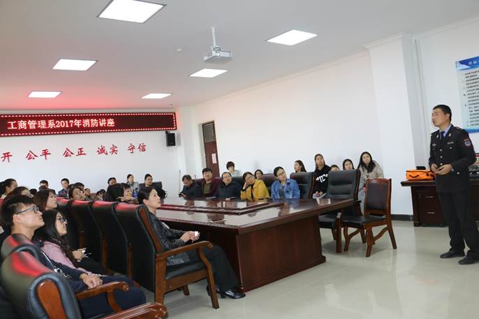 为进一步提高全系师生的消防法制观念及防控火灾、逃生自救的能力。11月2日下午,工商管理系邀请郑州市消防支队宣讲团曹玉臣同志为教师和学生代表代表送上一堂生动、精彩的消防安全知识讲座。