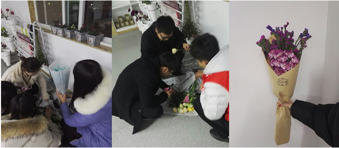 在竞赛实施过程中,各团队根据策划方案在规定时间内集中选购5-6种花材,进行产品设计、完成线上线下同步销售,并鼓励采用营销策略维系新老客户。
