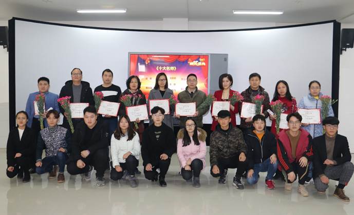 在颁奖环节,首先颁发的是2017年度学生最满意的十大名师奖,颁奖人是一群大学生,而领奖的却是他们的老师。颁奖词由学生撰写,优秀教师由学生海选,学生给老师们颁发了大红的证书,献上了母亲之花康乃馨,表达学生对老师的爱与尊敬,这样的评选活动在工商管理系开展了九年。随后,颁发了优秀辅导员奖和特殊贡献奖。