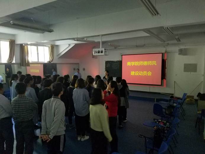 4月19日下午商学院在该系实训室召开师德师风教育动员会。全院教师参加会议。会议由党总支书记李相勤主持。