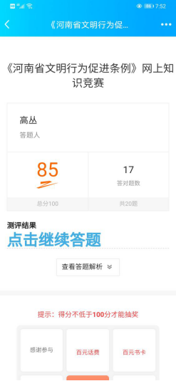 为进一步推动《河南省文明行为促进条例》的学习宣传和贯彻落实,引导和推动省直机关干部职工树立文明观念,促进文明行为养成,12月9日至22日,商学院在党总支书记李相勤的带领下,认真学习了《河南省文明行为促进条例》,并积极参加了网上知识竞赛活动。