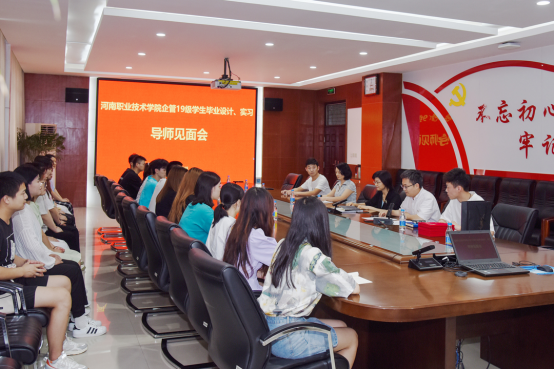 商学院院长万久玲发言:“李书记深入基层到商学院指导工作,并担任19级企管20名同学的毕业设计、实习导师,体现了李书记对职教事业的热爱和对同学们的关怀。作为经济管理专业的前辈,李书记理论根基深厚,实践经验丰富,同学们要多向书记学习、请教,深刻领会书记的教导,争取毕业设计和实习取得优秀的成绩。”