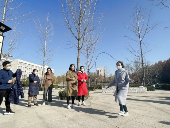 12月2日中午,财经管理学院分工会在学校明湖广场组织开展了跳绳、踢毽子健身活动,全体会员参加了活动。活动现场一时间笑声、加油声此起彼伏,每个人脸上都洋溢着健身带来的灿烂笑容。
