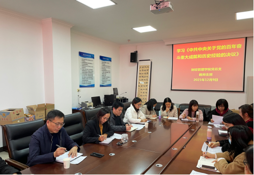 12月9日下午,财经管理学院教师支部在512会议室举行学习《中共中央关于党的百年奋斗重大成就和历史经验的决议》活动。专题学习活动由我院教师支部书记张毅飞主持,全体党员参与学习。