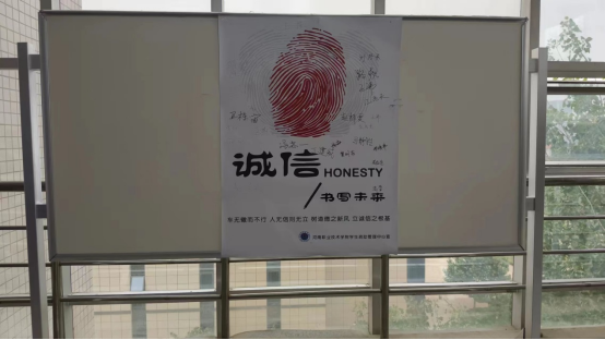 我院毕业班辅导员通过召开线上主题班会,对贷款学生开展诚信教育、感恩教育、励志教育,引导广大青年学生珍爱信用、理性借贷,提高学生征信意识、金融意识、风险意识、法律意识,帮助他们树立正确的消费观和价值观。同时在6月15号开展了诚信倡议与签名活动,并在诚信海报上踊跃签名,纷纷表示要以勤恳的态度在当下努力充实自己,以更好的姿态在未来回报母校,报效祖国。