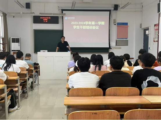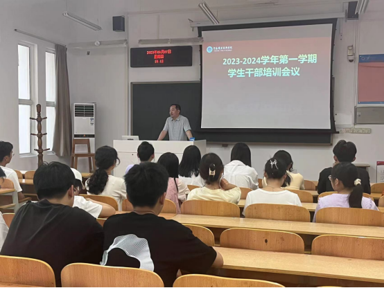 会上,学院党总支吴玉刚书记首先结合我校新学期学生工作会议精神,教导我院学生干部要树立服务意识、强化责任担当、建立奋斗目标,在实践中探索真知,努力成为一名老师同学都可信赖的学生干部。随后,余湾副书记具体从工作态度、工作方法、工作要求等方面对学生进行了培训,指出学生干部要甘于奉献,敢于创新,积极投入到新学期各类日常的活动中去,充分体现个人价值。