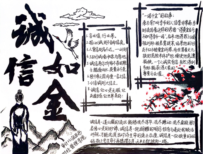 为了使诚信教育成效显著,财经管理学院组织开展了多种形式的教育活动。为了提高学生们的思想认识,财经管理学院全体辅导员利用线上线下方式开展了诚信教育主题班会,从思想上提高学生诚实守信的意识。为了提高教育活动的趣味性,团总支学生会组织了诚实守信倡议签名、诚信宣誓、诚信主题手抄报、诚信演讲比赛、诚信征文比赛等活动,进一步引导学生时时记着恪守诚信,做到诚信考试、感恩守信、助学贷款按时还款,提高征信意识。