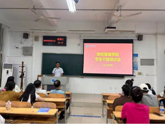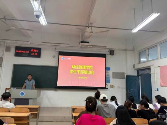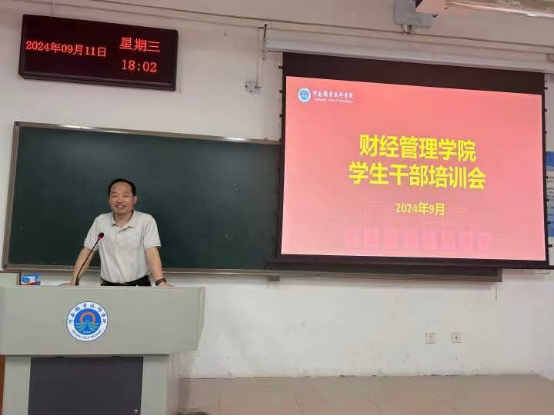 为进一步提升学生干部的综合素质和能力,增强学生干部的组织管理能力、沟通协调能力、团队合作能力以及解决问题的能力, 9月11日下午,我院在教学楼1105教室举办了学生干部培训会议,学院党总支书记马金伟、副书记余湾、学生会全体干部和23级各班班委成员参加了会议,会议由团总支书记张文龙主持。
