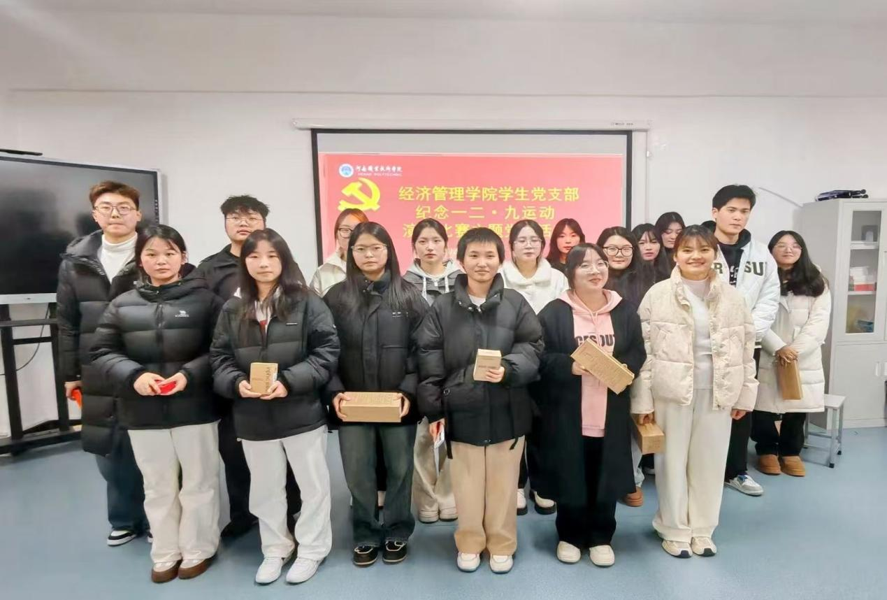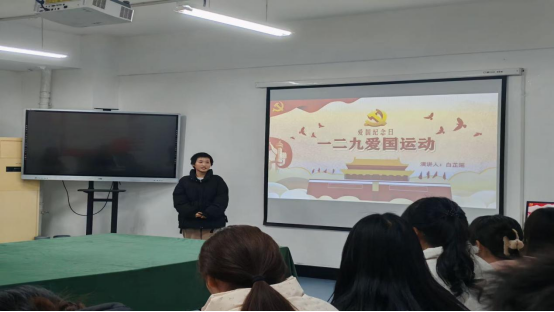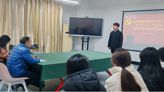 为纪念“一二·九” 运动89周年,弘扬爱国主义精神,传承红色基因,激发学生的历史责任感和使命感,厚植爱国情怀, 12月12日晚上,红挑ht92vip学生党支部在笃行楼603举办了纪念“一二·九” 运动演讲比赛主题党日活动,支部书记张文龙、组织委员辛馨、18名参赛选手和部分学生代表参加了活动。