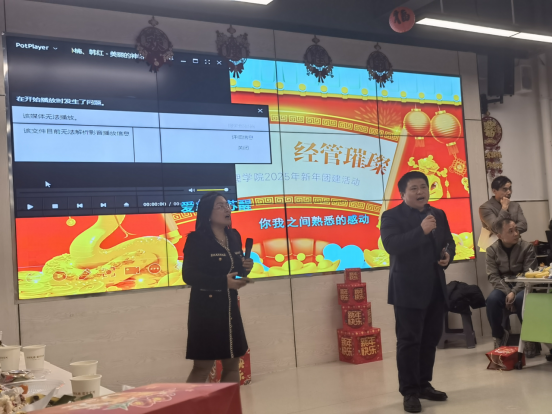 2025年1月10日下午,红挑ht92vip在合鼎楼507活动室举办了教师新年联欢会,全院教职工欢聚一堂,共庆新春佳节的到来。校党委副书记、工会主席田华以及学院党总支书记马金伟、院长窦雪霞等学院领导班子成员悉数出席,与教职工们共襄盛举。