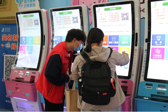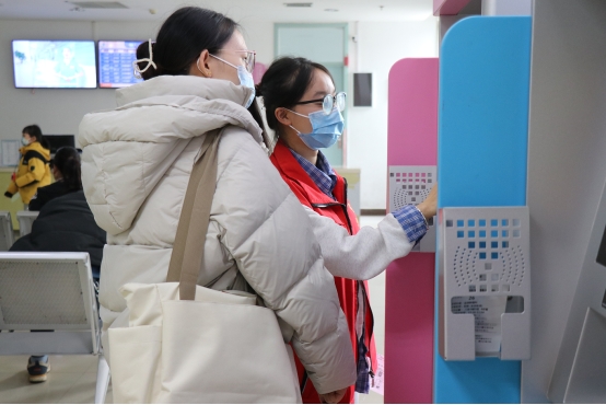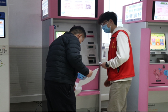 为顺利开展志愿服务,首先,医院医护人员对志愿者们进行了统一的门诊区域志愿服务培训,使志愿者了解医院各科室的布局、自助设备的操作方法和引导患者就诊等服务。随后,志愿者们根据医护人员的分工安排,奔赴不同的岗位开始志愿服务。志愿服务过程中,志愿者们各司其职,认真维持秩序、耐心帮助家长使用报告查询自助设备等,大大的提高了患者就医的效率和质量,提升了医院服务的满意度。