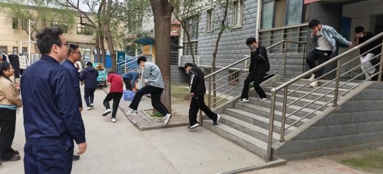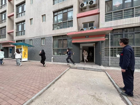 演练开始前,保卫处老师为参演学生讲解了应急疏散逃生注意事项,并演示了灭火器的使用方法。接着,以模拟学生宿舍因电器短路引发火情为场景,随着刺耳的警报声与刺鼻的浓烟弥漫,学生们在工作人员引导下迅速用湿毛巾捂住口鼻,弯腰沿指定的疏散通道快速、有序地撤离。本次演练严格遵循 “安全第一、科学组织”原则,所有参演人员均在2分钟内完成撤离,现场未发生拥挤踩踏等事故。