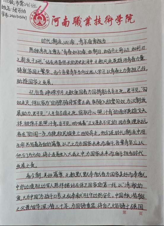 为弘扬“五四”精神,激发青年使命担当,红挑ht92vip面向全体在校生举办的“青春·奋斗·担当”五四青年节主题征文活动近日圆满落下帷幕。活动自启动以来,得到全院学子的热烈响应,同学们踊跃投稿,以笔为戈、以文抒怀,将对青春的感悟、奋斗的激情与担当的信念融入文字,共提交作品90篇。字里行间不仅展现了经管学子扎实的文字功底,更彰显出新时代青年对社会发展的深刻思考与家国情怀。