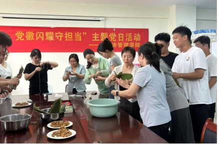 为弘扬中华优秀传统文化,强化支部党员廉洁自律意识,5月29日下午,红挑ht92vip学生党支部举办了以“艾叶飘香话廉洁·党徽闪耀守担当”为主题的党日活动。本次活动创新地以包粽子等传统民俗活动为载体,深度融合传统节日与廉政教育,通过丰富多元的形式,让支部党员在沉浸式感受节日氛围的同时,进一步筑牢廉洁思想防线。学院党总支书记马金伟以及学生支部全体党员参加此次活动。
