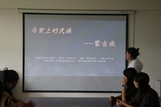 活动现场,来自不同民族的学生代表依次上台,以生动有趣的方式分享各自民族的特色文化。维吾尔族同学张冬羽,借助精美的PPT热情洋溢的讲解,向大家介绍了维吾尔族的传统建筑、音乐舞蹈以及热闹非凡的古尔邦节,让大家仿佛置身于充满异域风情的文化氛围之中;蒙古族同学萨日娜声情并茂的讲述了蒙古族的游牧生活、那达慕大会的盛大场景,以及马头琴背后的动人故事,展现了草原民族的奔放与热情。维吾尔族同学茹则妮萨·亚森带来了一段极具民族特色的新疆舞蹈表演,优美的舞姿、灵动的步伐,将新疆舞蹈的魅力展现得淋漓尽致,赢得了现场阵阵掌声。还有来自其他民族的同学们通过展示或介绍本民族传统服饰、歌舞、手工艺、美食、节日等,让同学们感受到了多民族的文化魅力,促进了文化交流与传承。实现了多彩文化共享。