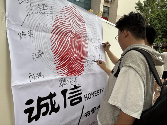 为强化教育效果,学院还开展了诚信签名活动。毕业生们在诚信海报上郑重签上自己的名字,承诺将严格遵守国家助学贷款合同约定,按时足额还款,做诚实守信的新时代青年。