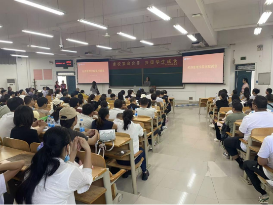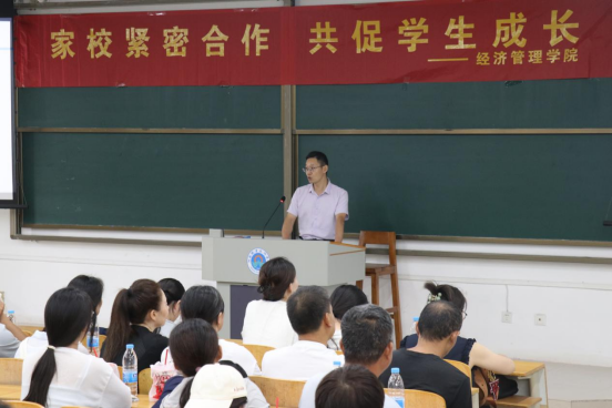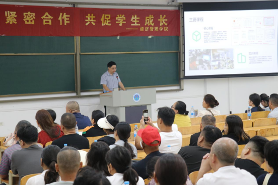 活动伊始,学院党总支书记马金伟代表学院对全体新生家长的到来表示热烈欢迎,并对家长们一直以来对学院工作的支持表示衷心感谢。他详细介绍了学院的发展历程、师资力量、人才培养模式以及近年来取得的办学成果,让家长们对学院有了全面而深入的了解。他强调,学院始终秉持“以学生为中心”的教育理念,致力于培养具有扎实专业知识、创新精神和实践能力的高素质经济管理人才。他希望家长们能够与学院携手合作,共同关注学生的成长与发展,帮助学生顺利度过大学阶段,实现人生目标。
