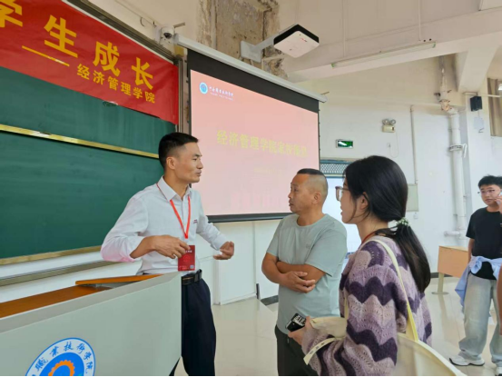 在院长解读之后,大数据与会计、工商企业管理、市场营销、电子商务、物流管理五个专业的教研室主任和辅导员代表依次上台,以行业发展趋势为导向,集中向家长们呈现了各专业的培养特色、学生资助等核心内容。各位老师围绕数字化、智能化时代人才需求,详细介绍了各专业的特色课程体系——涵盖智能会计、大数据管理、跨境电商、智慧物流等前沿领域课程,同时重点提及了学院为各专业搭建的实践平台,包括与知名企业共建的实习基地、校园电商实训基地、智慧物流实训室等,以及各类技能大赛与实战项目,让家长清晰了解学生如何通过 “理论 + 实践” 提升专业能力。此外,主任们还结合具体数据与案例,介绍了各专业毕业生的就业方向与竞争力,从企业管理岗、会计师事务所、头部电商平台到物流龙头企业,全面展现了各专业的就业前景,并现场解答了家长关于专业选课、证书考取、实习安排等疑问,有效消除了家长对学生专业学习的顾虑。