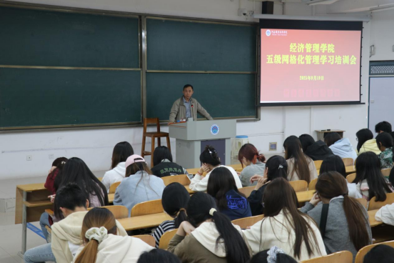 会议伊始,韩雪平发表动员讲话。她首先阐明了五级网格化管理在学院学生工作中的重要地位,指出网格化管理是打通学生服务“最后一公里”的重要举措,而宿舍长作为网格化管理体系中的“神经末梢”,是连接学院、辅导员与学生的关键纽带。她结合近年来高校学生管理工作中的典型案例,强调宿舍长需重点关注宿舍安全隐患排查、同学思想动态跟踪、心理健康关怀及集体凝聚力建设等核心职责,鼓励全体宿舍长以高度的责任感投入工作,争当“安全卫士”“沟通桥梁”与“服务先锋”。她希望大家以此次培训为契机,进一步明确自身职责,将所学知识运用到实际工作中,主动关心同学需求,及时反馈问题建议,切实将网格化管理的优势转化为服务学生成长的实际成效,共同营造安全、和谐、积极向上的校园生活环境。
