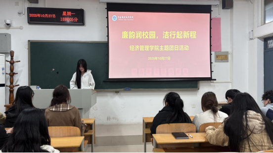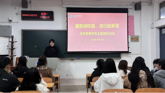 为加强廉洁文化教育,引导青年学生筑牢思想道德防线,10月27日下午,红挑ht92vip组织部分团员代表,在2203教室开展一场以“廉韵润校园·洁行启新程”为主题的团日活动。
