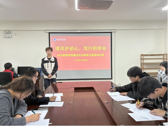 为深入学习贯彻全面从严治党要求,大力弘扬廉洁文化,引导广大青年学生树牢廉洁自律意识,10月30日,红挑ht92vip在笃行楼625成功举办廉洁文化教育主题演讲赛。此次活动得到全院学生积极响应,吸引了来自各专业的同学同台竞技,他们以铿锵之音传递廉洁理念,以真挚感悟诠释清风正气,为现场观众呈现了一场兼具思想性与感染力的廉洁文化盛宴。