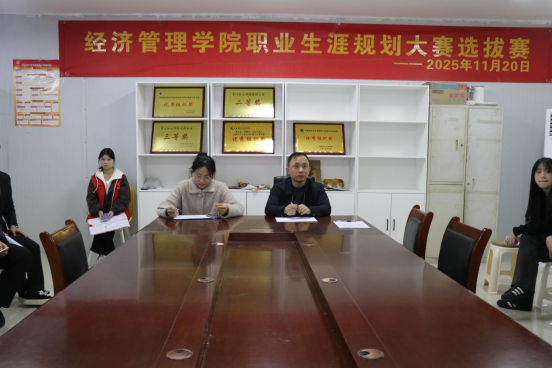 为引导学生明确职业方向、增强职业发展规划自觉性,全面提升就业核心竞争力与逻辑表达、问题解决等综合能力,11 月 20 日,我院大学生职业规划大赛选拔赛在笃行楼 625顺利举行。来自学院不同专业的 13 名优秀选手同台竞技、展现风采,学院团总支书记张文龙、辅导员王丽欣受邀担任本次比赛评委,为选手成长保驾护航。