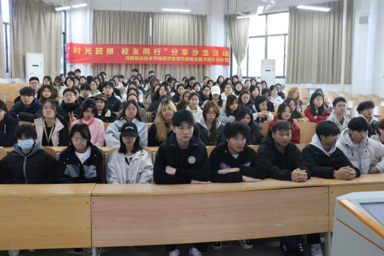 上午9时,“时光回想·校友同行”分享沙龙率先拉开帷幕。学院特别邀请了两位深耕行业多年、业绩斐然的优秀校友,以鲜活案例与前沿洞察赋能青年成长。两位校友结合自身十余年的职场深耕经历,从职业选择的初心、行业发展的趋势、职场瓶颈的突破等多个维度展开分享。其中,深耕互联网行业的余晓庆以“从校园到职场的转型密码”为题,详细拆解了大学生从理论学习到实践应用的衔接要点;河南省国家大学生科技园人力资源总监高昌昌则聚焦“00后职场人的核心竞争力”,针对简历优化、职场沟通等高频问题给出实用建议。分享环节后,同学们踊跃提问,就“跨专业就业的优势构建”“实习经历与职业规划的匹配度”等问题与校友深入交流,现场氛围热烈。